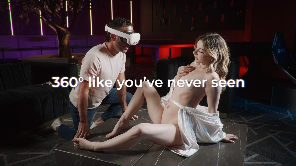 Braindance uses volumetric passthrough VR to put her in your actual room, shot with studio-level production quality that makes every detail land. Get close, circle around her, change your angle whenever you want. You're not watching. You're there.